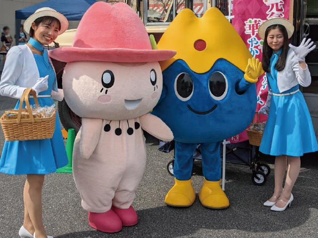 フェスタエンジェルのお二人、瑞穂区のキャラクター「みずほっぺ」、商業フェスタのキャラクター「ホッピン」くんも登場してくださいました。