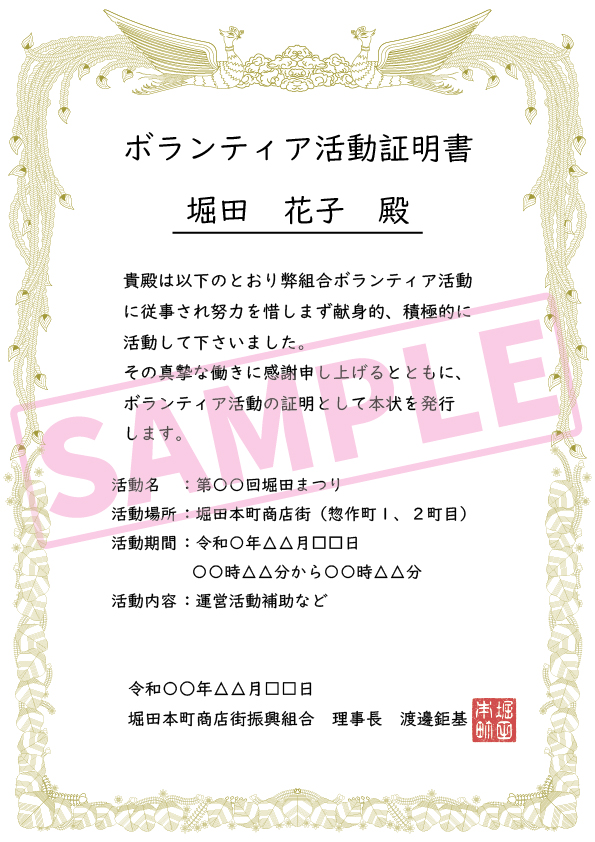 ※希望者には、「ボランティア活動証明書」を商店街より発行いたします